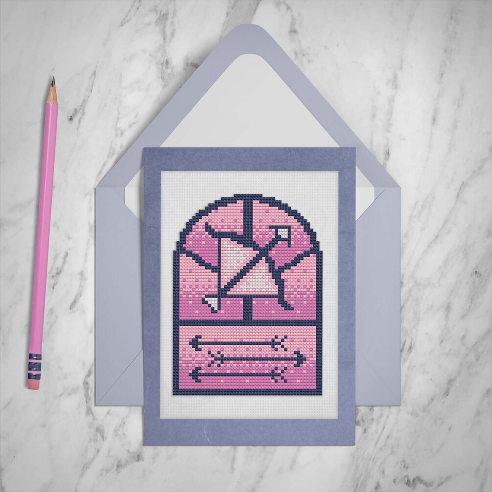 Cupid’s Bow and Arrow Stained Glass Cross Stitch Pattern